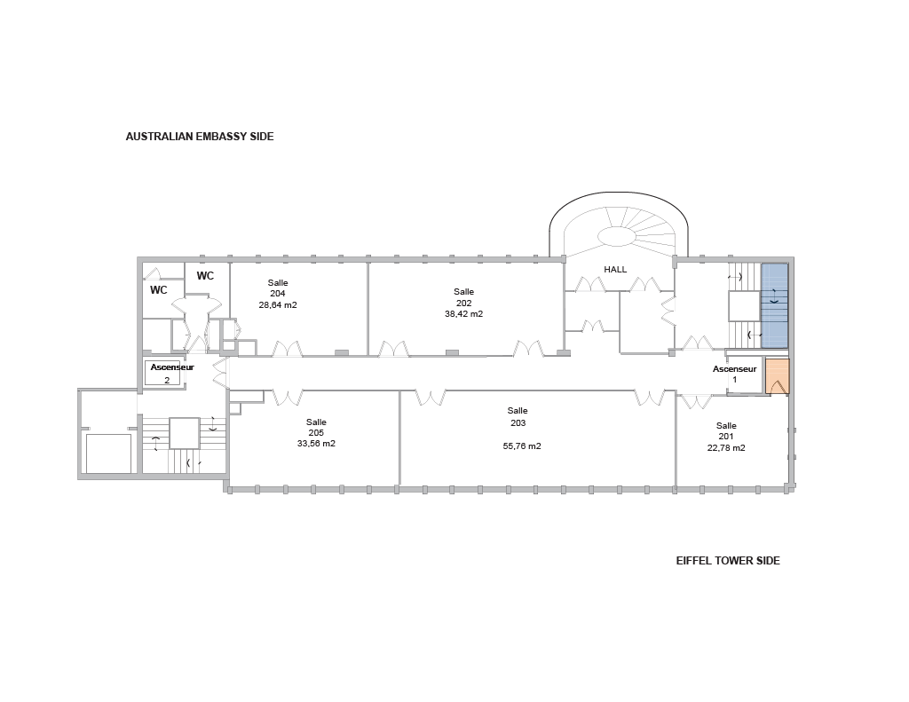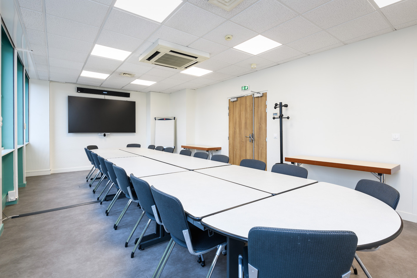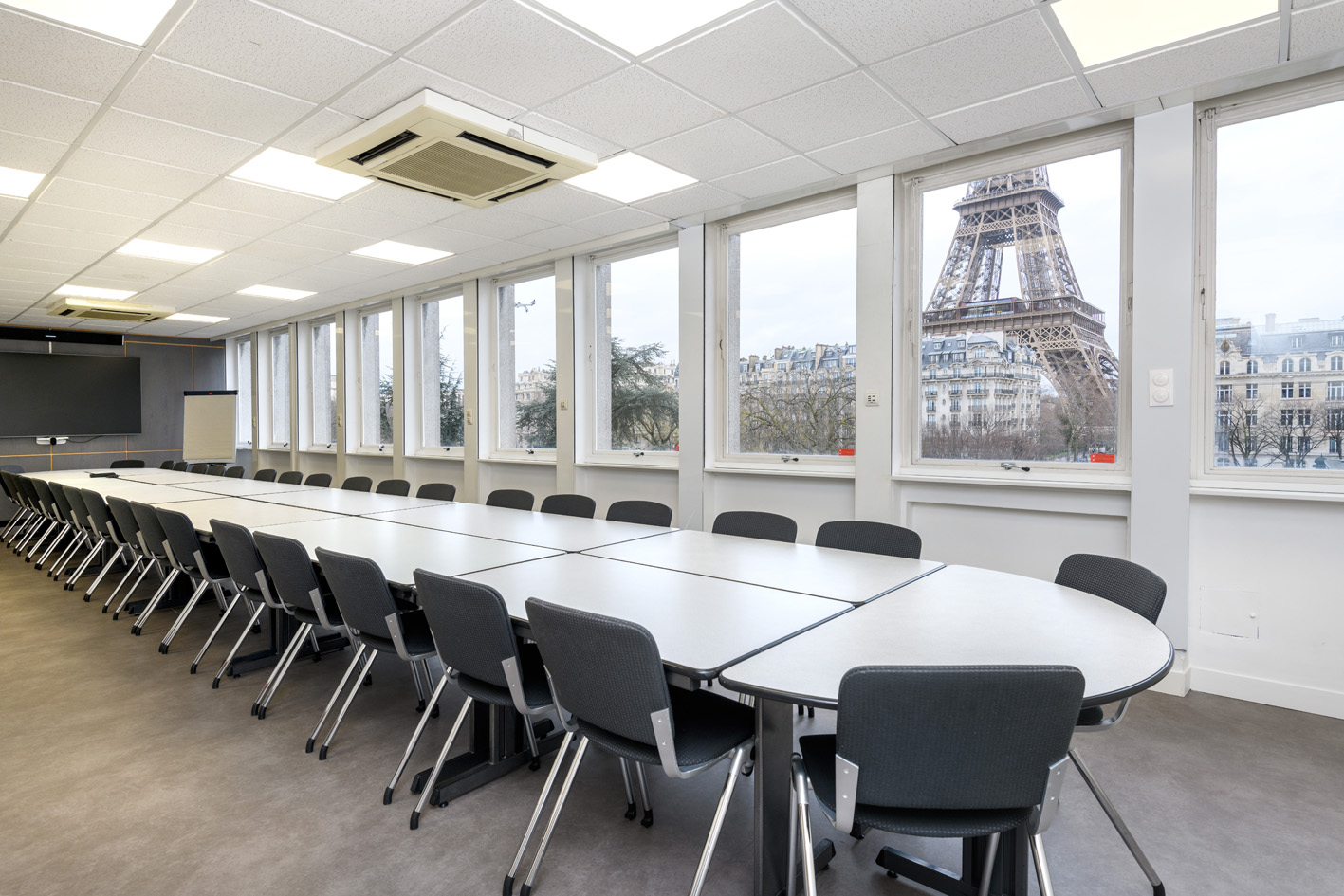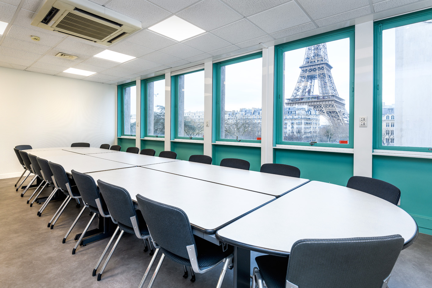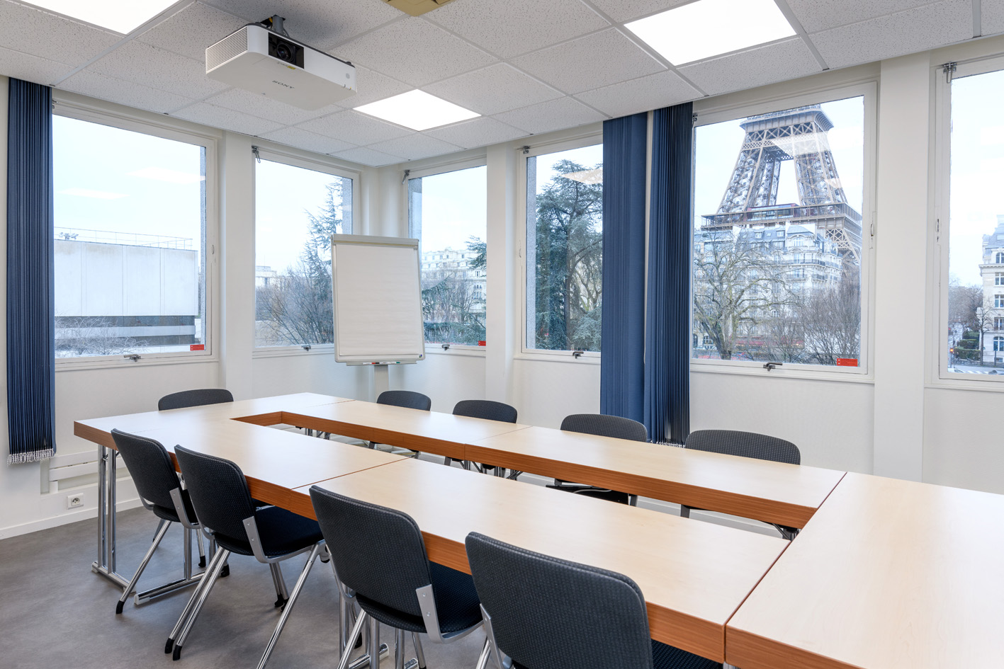 Nos salles de sous-commission Salle de visioconférence Salle 305 Salle 304 Salle 303 Salle 302 Salle 301 Salle 205 Salle 204 Salle 203 Salle 202 Salle 201 Nos 13 salles de sous-commission modulables peuvent accueillir de 10 à 80 participants et sont équipées d’un paperboard, d’un écran, d’un vidéoprojecteur et d’un tableau blanc. Confortables, fonctionnelles et bénéficiant toutes de la lumière du jour, nos salles vous permettront d’organiser au mieux vos sessions de formations, vos groupes de travail et vos réunions de comité d’entreprise. Pour vos réunions de prestige, nous vous proposons 6 salles avec vue imprenable sur la Tour Eiffel. Cacher le tableau / Montrer le tableau Salle Surface en m² Disposition en théatre Disposition en classe Disposition en réctangle Vue sur la Tour Eiffel 201 23 - - 10 oui 202 38 35 20 24 non 203 56 50 48 38 oui 204 29 30 16 14 non 205 34 36 16 18 oui 301 23 - - 12 oui 302 53 50 32 36 non 303 54 50 40 36 oui 304 33 30 16 18 non 305 33 30 16 20 oui Salle de visioconférence Salle de visioconférence Disposition en réctangle 14 pers. Vue sur la Tour Eiffel Vue sur la Tour Eiffel Salle 305 305 Surface en m² 31 m² Disposition en théatre 30 pers. Disposition en classe 16 pers. Disposition en réctangle 20 pers. Vue sur la Tour Eiffel Vue sur la Tour Eiffel Salle 304 304 Surface en m² 31 m² Disposition en théatre 30 pers. Disposition en classe 16 pers. Disposition en réctangle 20 pers. Salle 303 303 Surface en m² 54 m² Disposition en théatre 55 pers. Disposition en classe 40 pers. Disposition en réctangle 28 pers. Vue sur la Tour Eiffel Vue sur la Tour Eiffel Salle 302 302 Surface en m² 52 m² Disposition en théatre 55 pers. Disposition en classe 32 pers. Disposition en réctangle 36 pers. Salle 301 301 Surface en m² 21 m² Disposition en réctangle 10 pers. Vue sur la Tour Eiffel Vue sur la Tour Eiffel Salle 205 205 Surface en m² 34 m² Disposition en théatre 36 pers. Disposition en classe 16 pers. Disposition en réctangle 22 pers. Vue sur la Tour Eiffel Vue sur la Tour Eiffel Salle 204 204 Surface en m² 29 m² Disposition en théatre 30 pers. Disposition en classe 16 pers. Disposition en réctangle 16 pers. Salle 203 203 Surface en m² 78 m² Disposition en théatre 80 pers. Disposition en classe 48 pers. Disposition en réctangle 42 pers. Vue sur la Tour Eiffel Vue sur la Tour Eiffel Salle 202 202 Surface en m² 41 m² Disposition en théatre 35 pers. Disposition en classe 20 pers. Disposition en réctangle 24 pers. Salle 201 201 Surface en m² 23 m² Disposition en réctangle 12 pers. Vue sur la Tour Eiffel Vue sur la Tour Eiffel Contact / Demande de devis